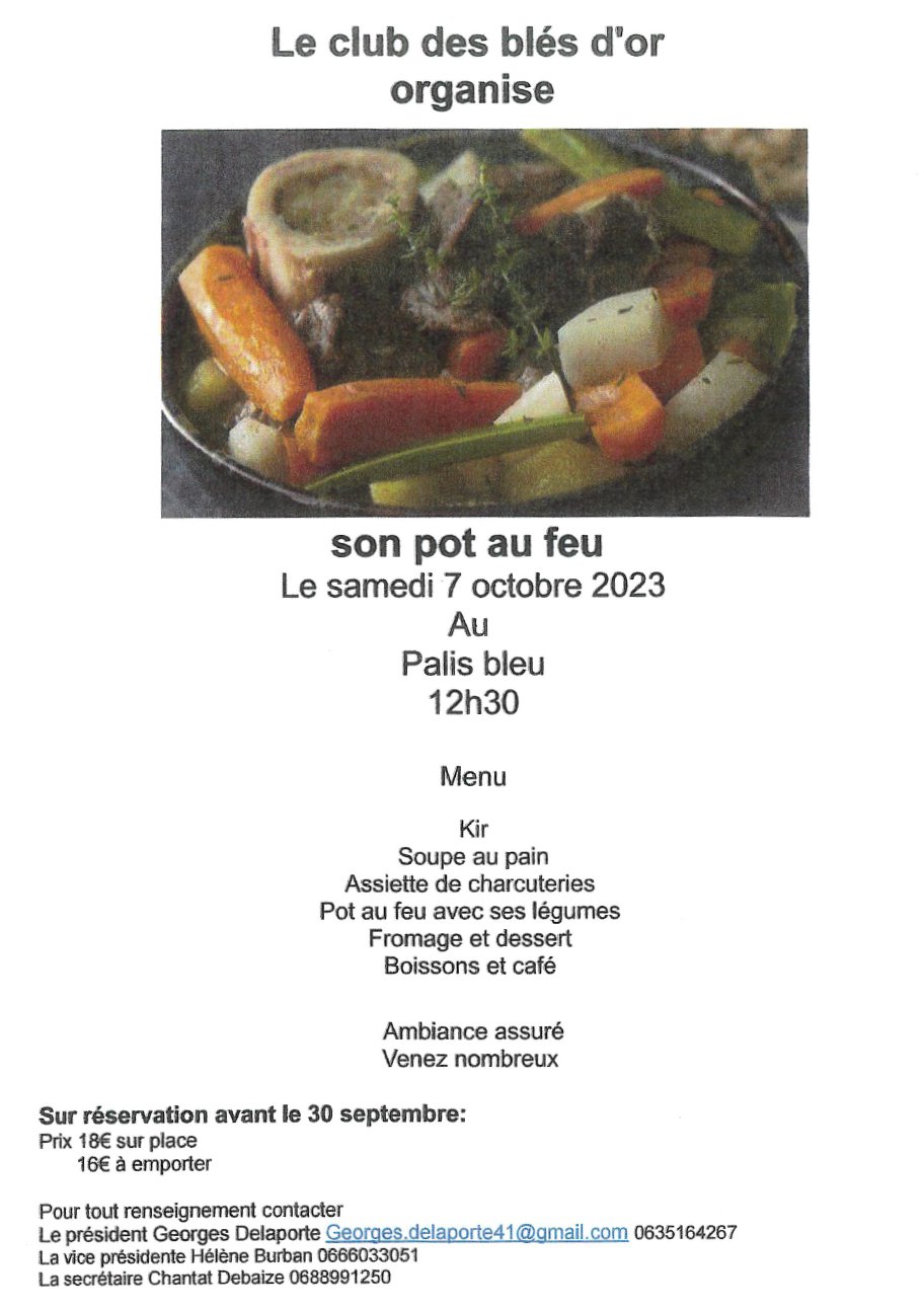 Le club des blés d’or organise son pot au feu | samedi 7 octobre 2023